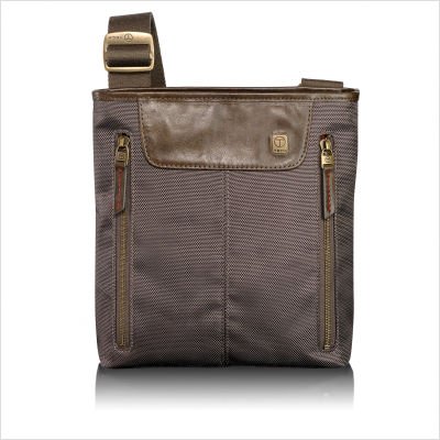 This Tumi T-Tech Forge Fort Worth Cross Body Zip Top has vintage elements, artisan detailing and a casual style combined with a contemporary collection of utilitarian day bags. Forge features distressed leather trim, ballistic nylon fabric, contrast stitching accents and antiqued brass hardware. Unique details like a small front flap and vertical exterior pockets add to the interest of this design. Organizer pockets and adjustable shoulder strap.