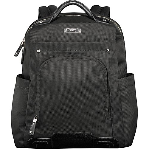 Perfecting the balance of substance and professional style, the Georgetown collection pairs Tumi’s legendary performance with elegant, feminine design details. These highly-functional business and travel accessories are made from Tumi’s signature ballistic nylon and complemented by embossed leather trim and polished nickel hardware. For those who prefer the hands-free mobility of a backpack, this design has everything you want. It features a collapsible laptop pocket with removable sleeve, removable accessory pouch, and organizer pockets inside and out. Top carry handle and adjustable backpack straps.